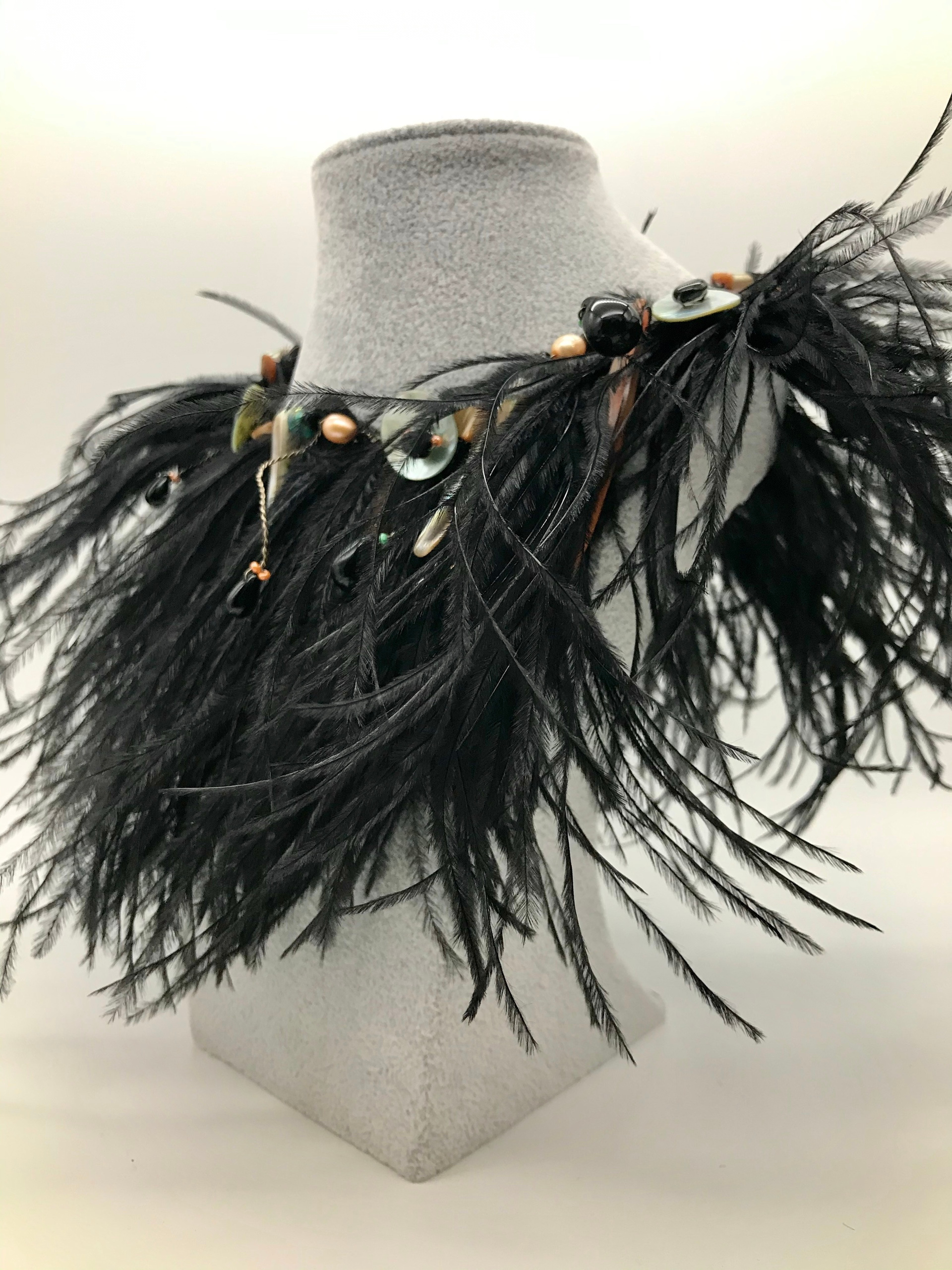 Серебряная проволока. Страусовое перо, натуральный перламутр. Уникальный экземпляр.