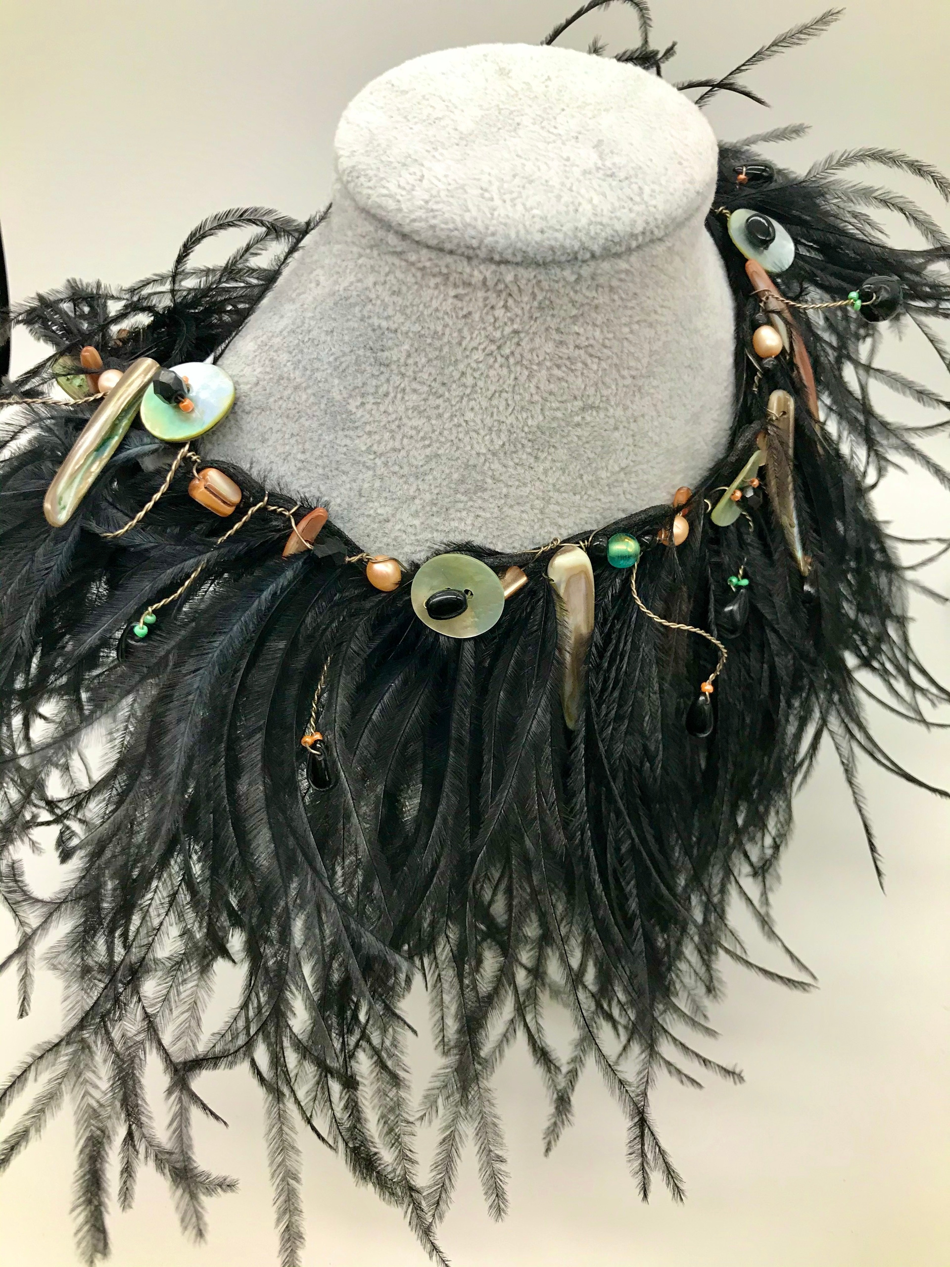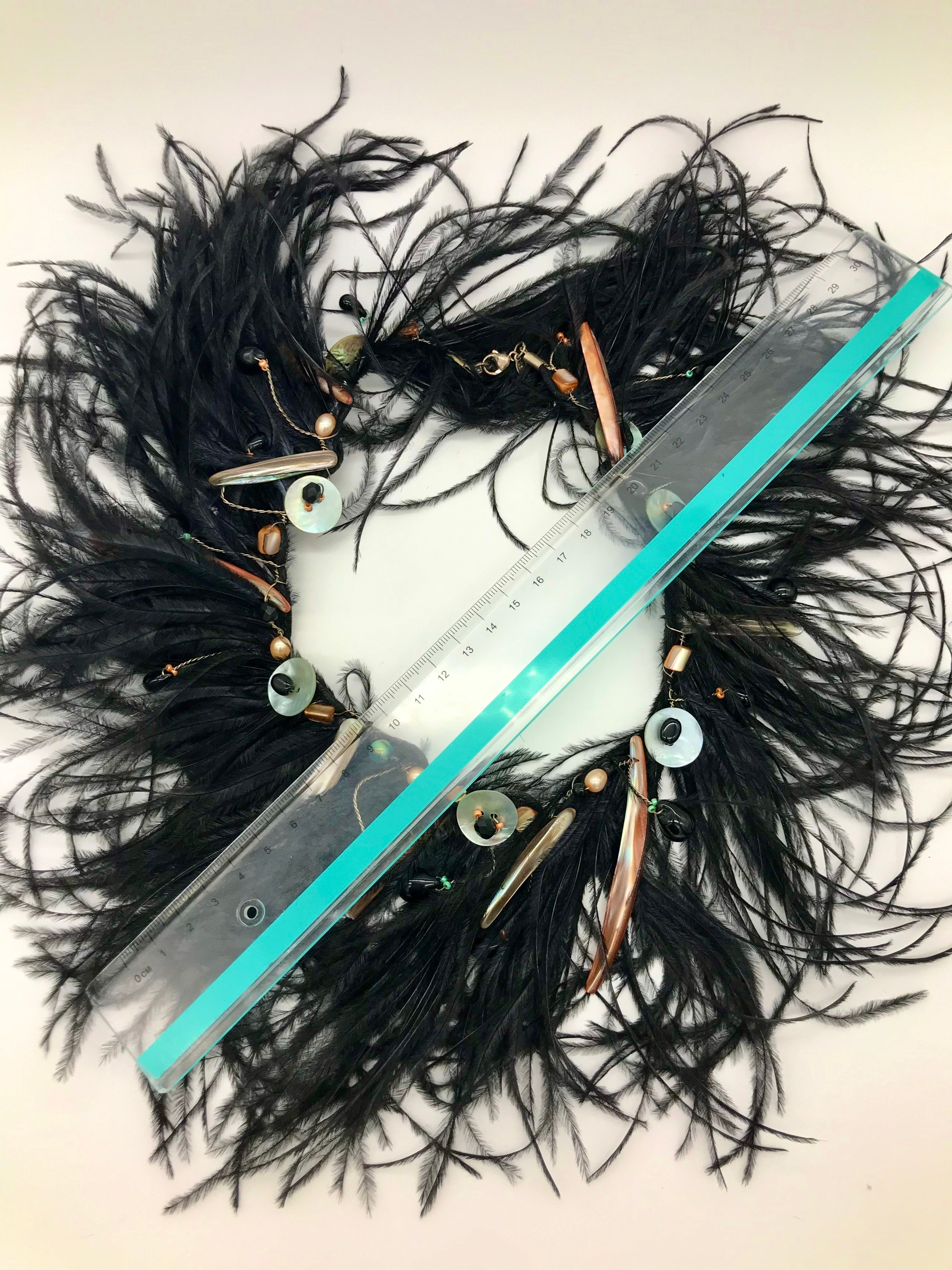 Серебряная проволока. Страусовое перо, натуральный перламутр. длинна изделия: 43 cm.