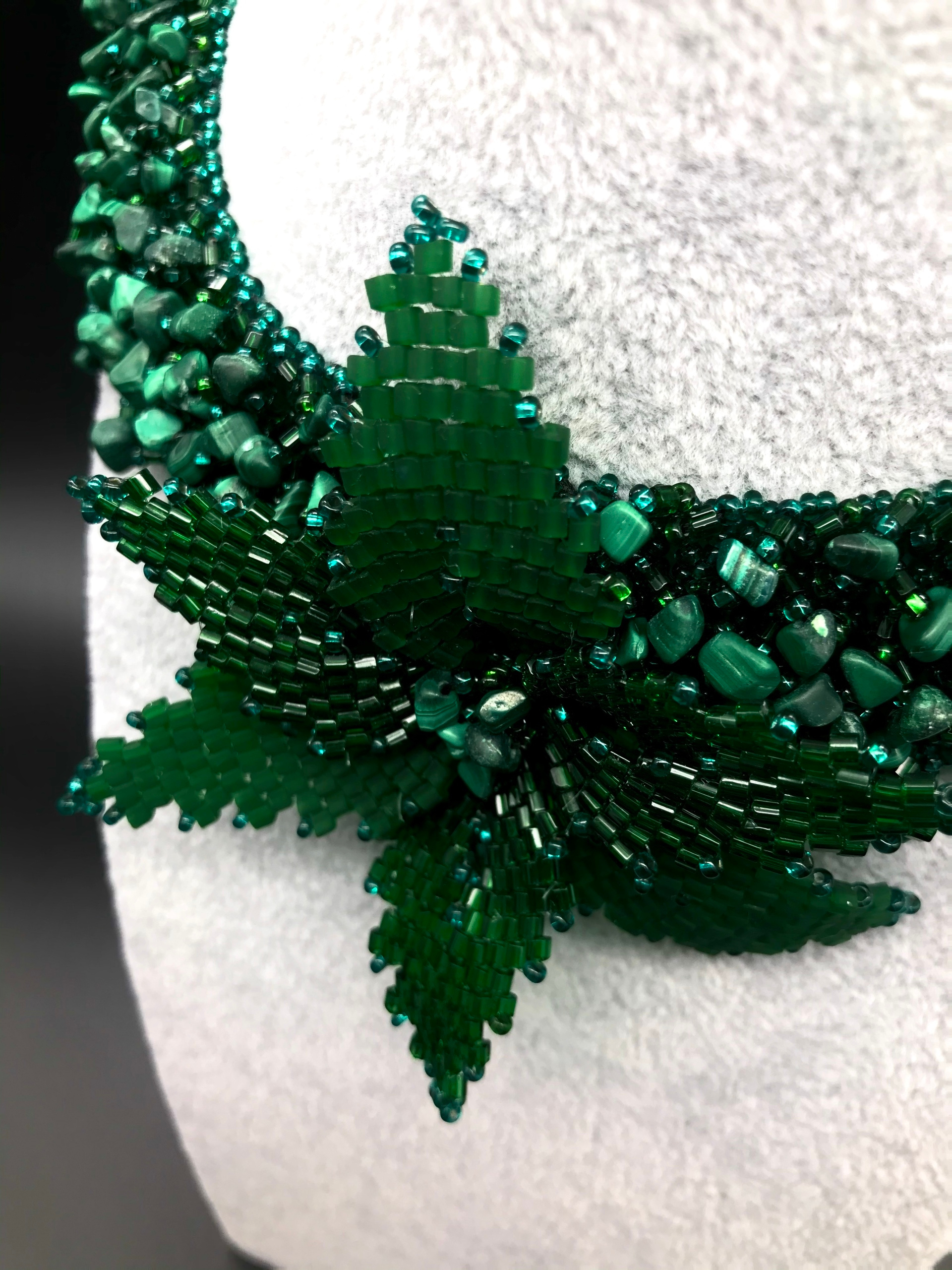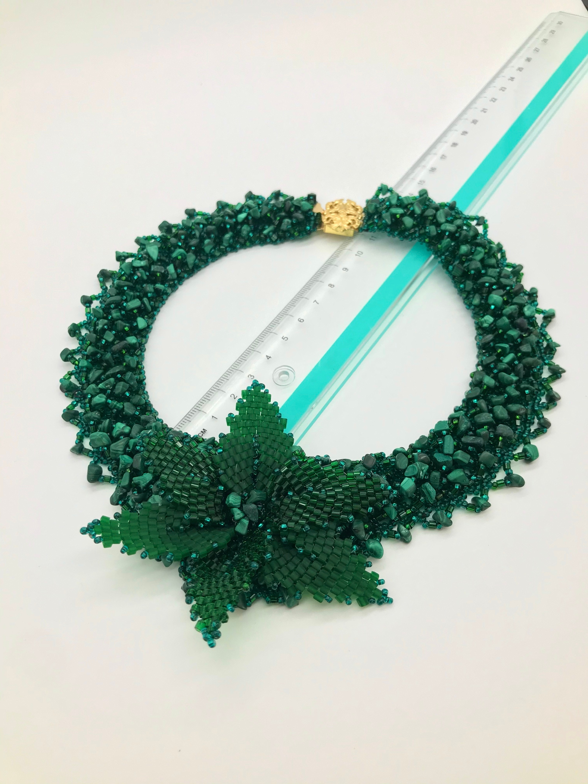 Ожерелье. Ручная работа бисер. Камень Малахит
