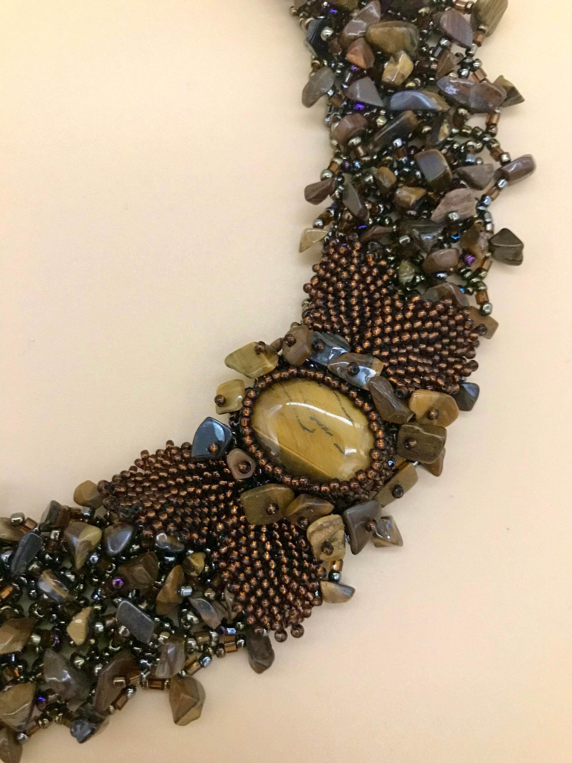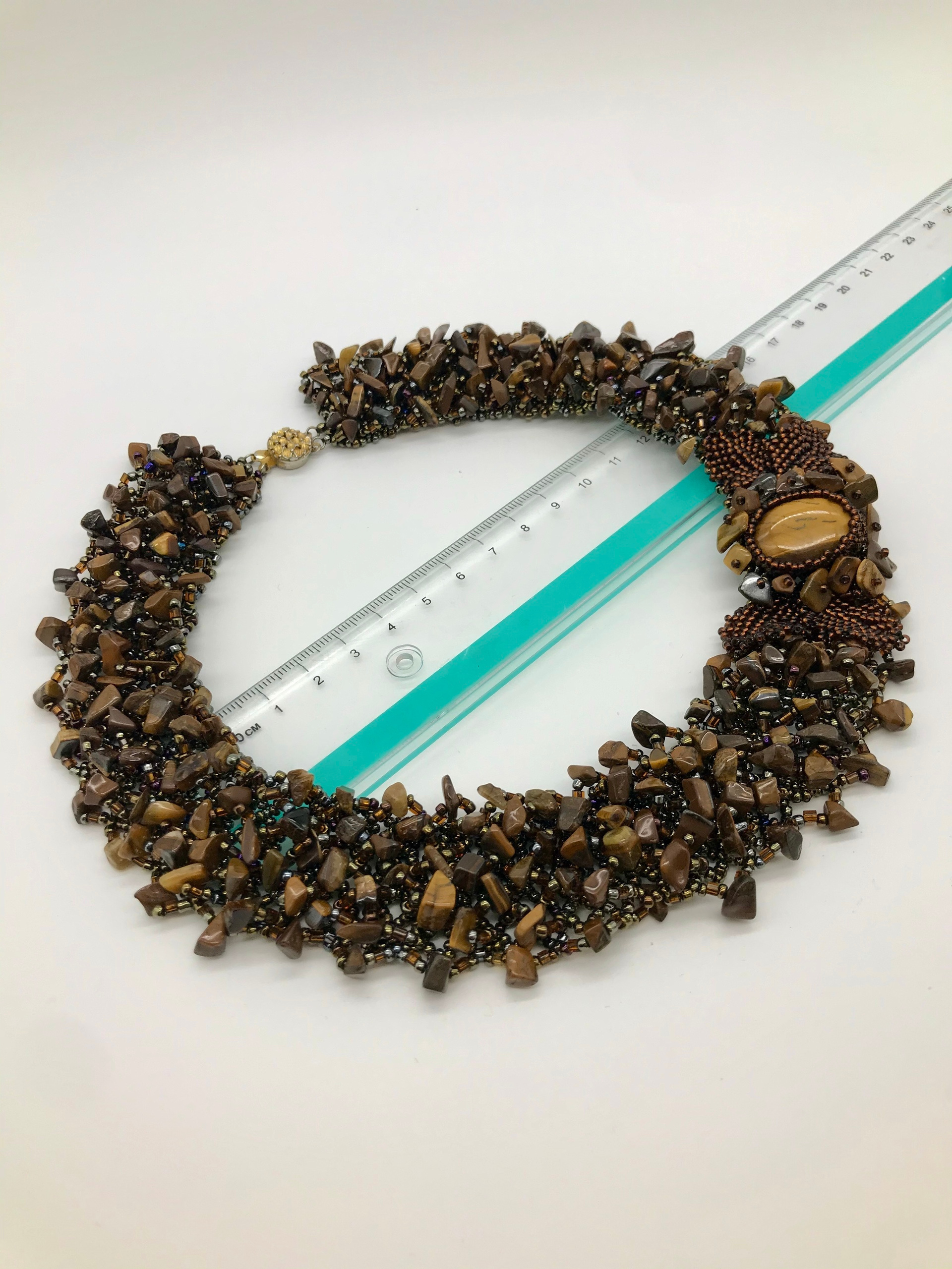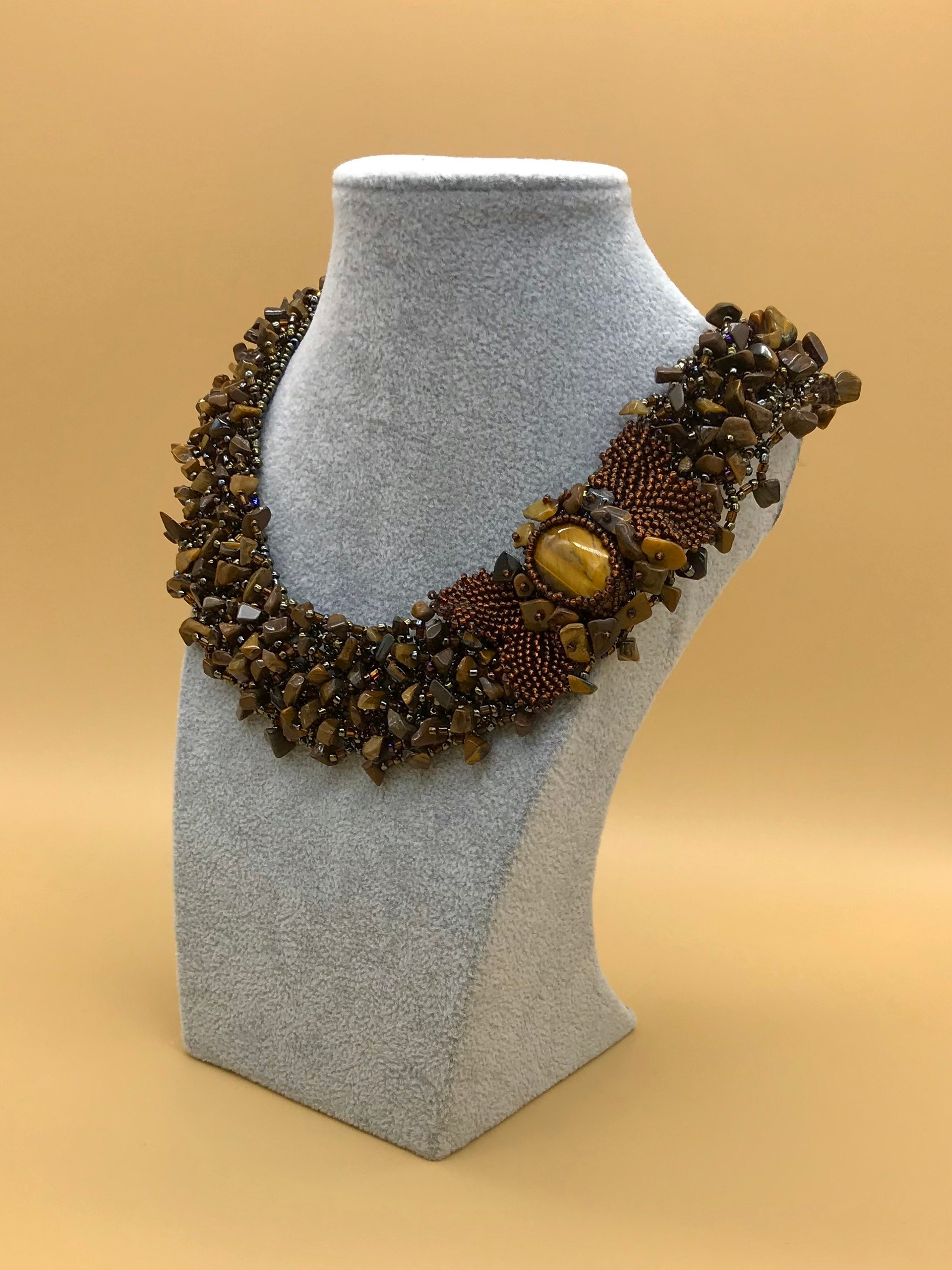 Ожерелье. Ручная работа бисер. Камень «Тигровый глаз»
